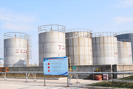 公司占地42畝,現已投產DMF回收處理車間和聚氨酯樹脂車間。DMF回收處置生產線,擁有國內水平及優良的產品檢測分析系統,日處理能力達到300噸以上,并有4個1000M3的廢液儲罐,及1個1000M3及3個300M3二甲基甲酰胺儲罐等儲存設施。